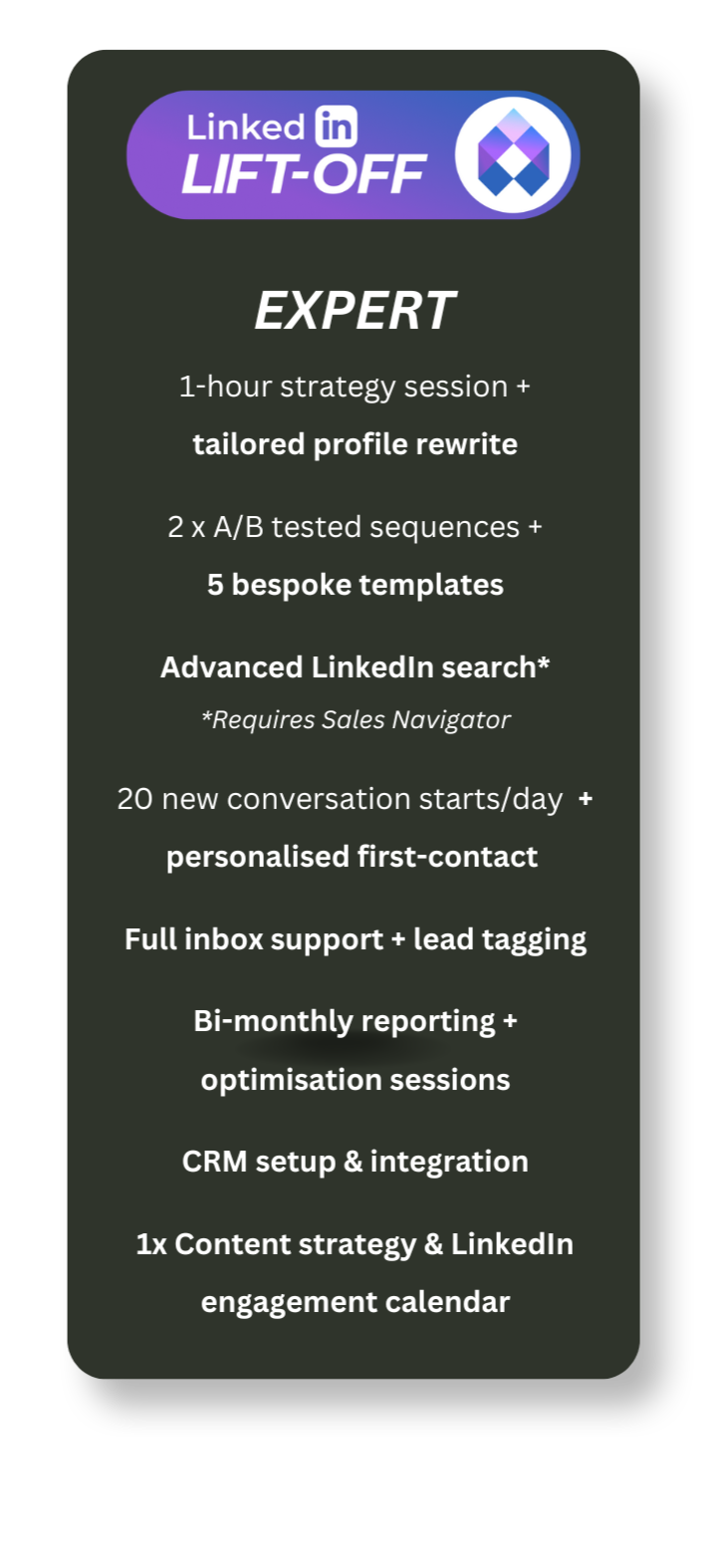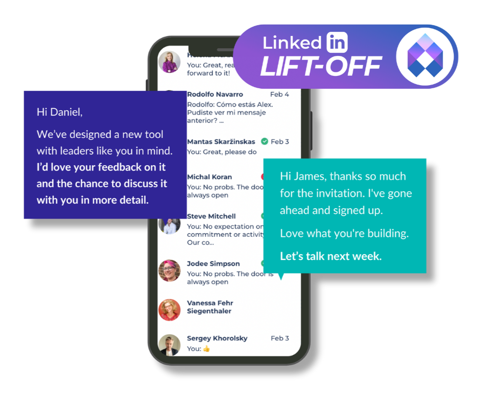 With LinkedIn Lift-off, start generating real conversations in just 7 days. No long setups or wasted time, cancel anytime.